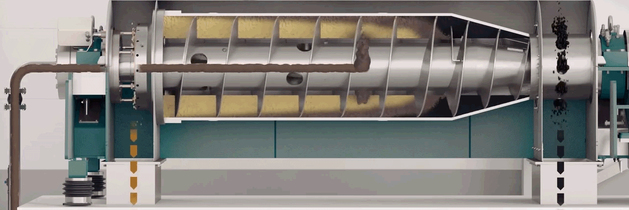 Een decanteercentrifuge bestaat uit een dichte trommel met daarin een schroef. De trommel draait met een hoge rotatiesnelheid waardoor een geïnjecteerde vloeistof een hoge centrifugale kracht ondervindt. De vaste delen zetten zich hierdoor vast op de binnenwand van de trommel en worden door de schroef via een conisch gedeelte uit de trommel gevoerd. De vloeistoffase ontsnapt uit de trommel aan de andere kant.